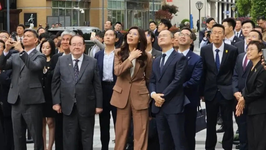 郑丽文在上海体验无人机送奶茶,开玩笑逗乐全场
